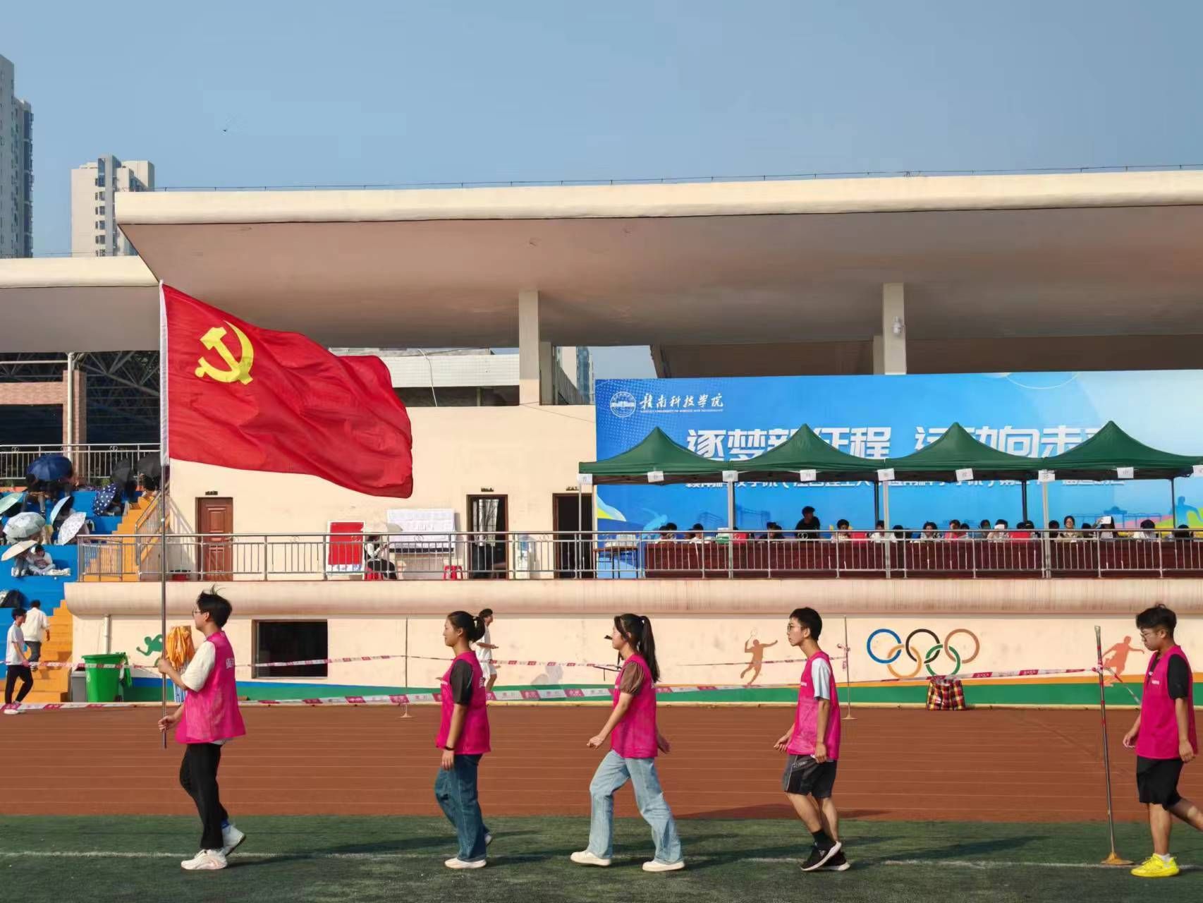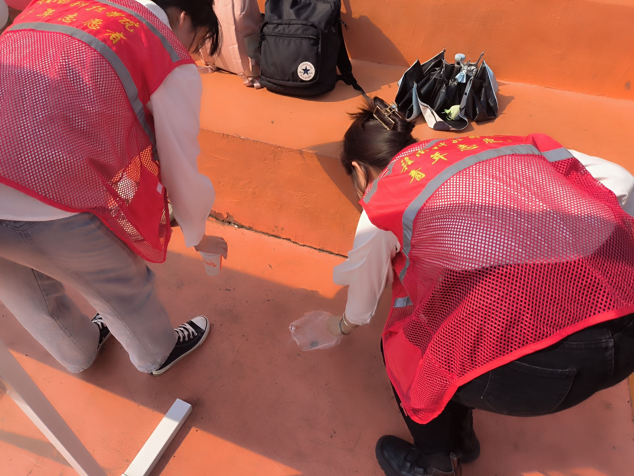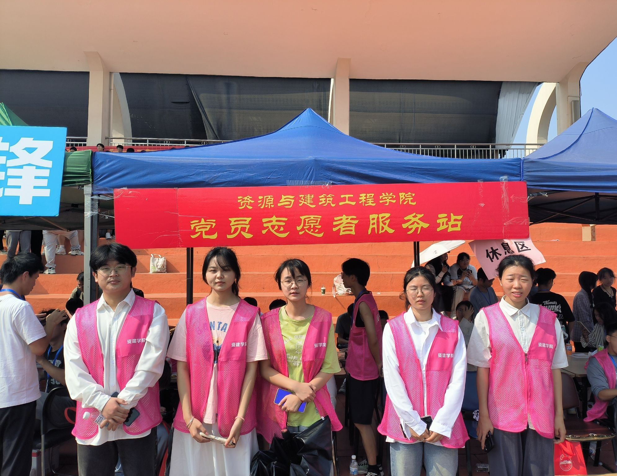 此次志愿服务中,学生党员和入党积极分子身穿红马甲,活跃于整个田径场。哪里有需要,哪里就有志愿者们的身影。志愿者们分工明晰,布置有序,全力做好运动员志愿服务保障工作。通过前期安排志愿者与运动员项目的对接工作,确保运动员顺利检录;同时为运动员提供暖心服务包,收纳运动员物品,准备运动员用水,确保运动员能安心比赛;为师生运动员呐喊助威,关心关注运动员赛后状态;拍照记录运动员的精彩瞬间,维护田径场的干净整洁,以饱满的热情做好本次志愿者服务工作,为师生运动员做好了后勤服务保障。