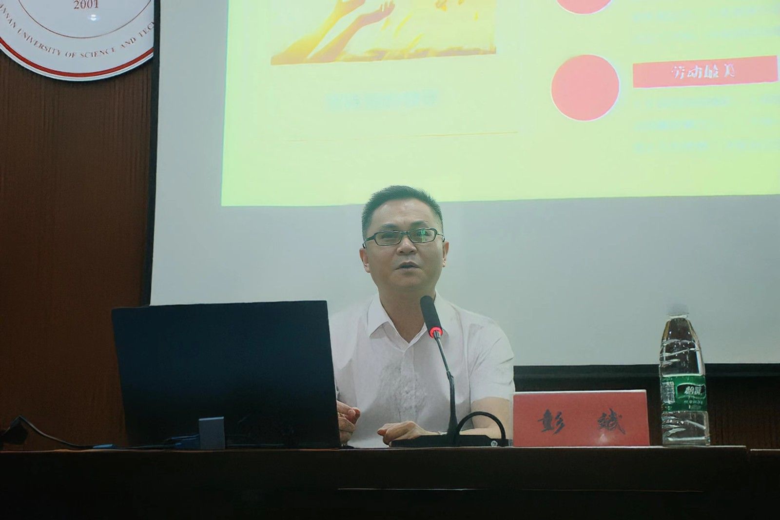彭斌从“崇尚劳动、热爱劳动、辛勤劳动、诚实劳动”的劳动精神进行讲解,引导大学生要树立正确的劳动观。并提出如何实现自我价值,争做新时代的奋斗者的方法,详细介绍了劳模精神,引导学生学习劳模精神、争做时代先锋。他倡议广大学生要始终坚持通过奋斗来实现自我价值,实现人生目标。