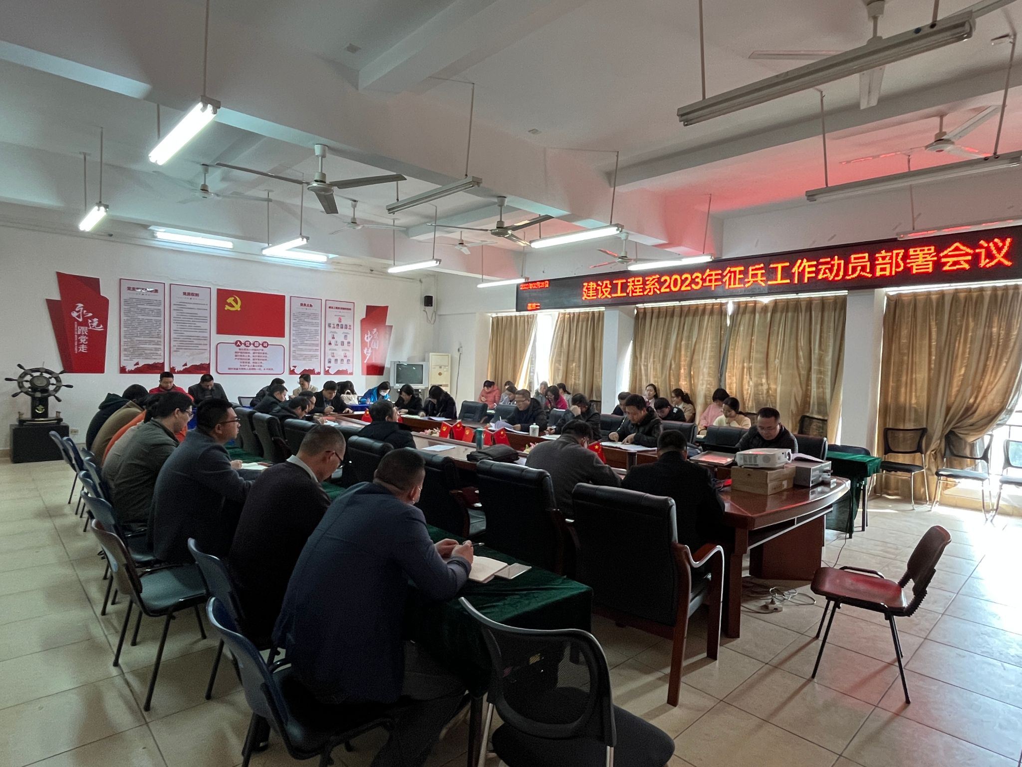 本网讯:为进一步提升新兵征集质量,为部队输送优质兵员,2月28日下午,建设工程系2023年征兵工作动员部署会议于Z713召开。建设工程系全体老师参与本次会议。