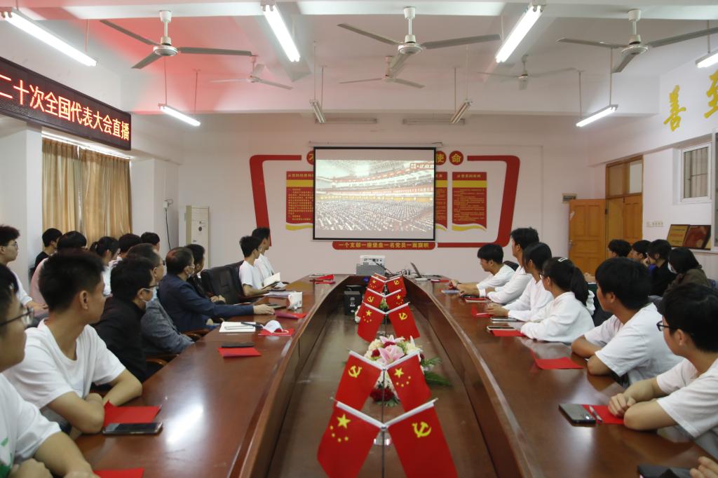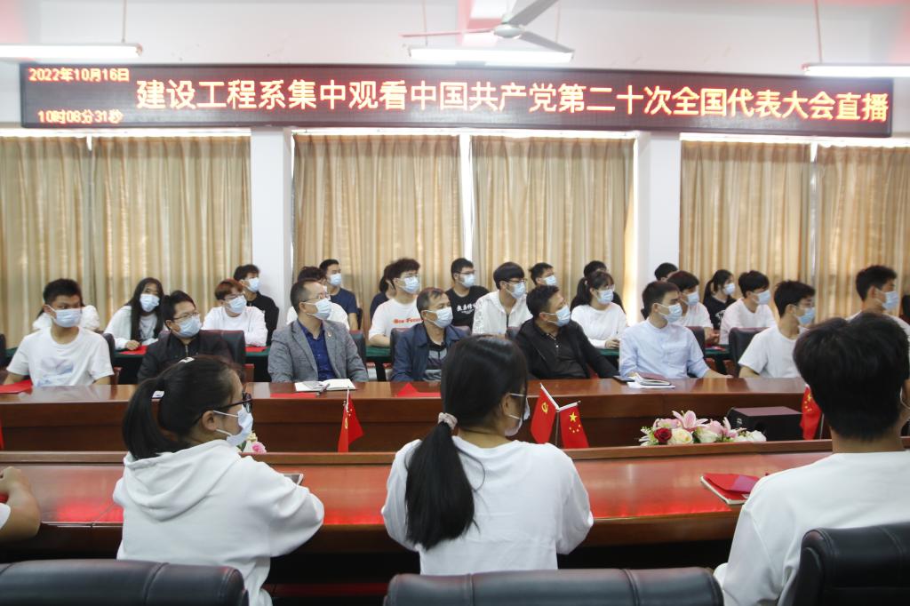 本网讯:10月16日上午,为庆祝中国共产党第二十次全国代表大会在北京隆重召开,建设工程系组织师生观看现场直播。系党总支书记李少华、主任卢志刚、副主任代靖怡、涂黎明,团总支书记刘辉及学生党员、学生干部于主教Z713、Z228集中观看直播。