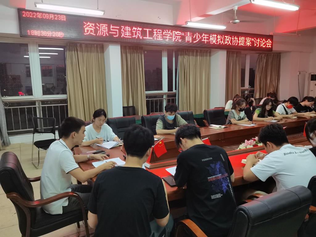 本网讯:为了迎接和宣传贯彻党的二十大,帮助青少年感悟制度优势、增强制度自信,提升学生的思想政治学科核心素养。9月23日晚,建设工程系组织学生干部在主教Z713召开“青少年模拟政协提案”讨论会,会议由团总支书记刘辉主持。