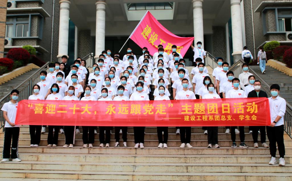 本网讯:生在红旗下,长在春风里,回顾百年历史,弘扬爱国情怀,3月21日早晨,建设工程系在崇善楼北门举行了“喜迎二十大,永远跟党走”升旗仪式,建设工程系团总支书记董宇鹏、团总支学生会全体成员及青马班成员参加了本次升旗仪式。