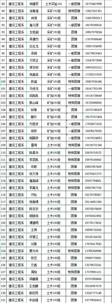 本网讯:建设工程系(资源与建筑工程学院)2021-2022学年18级—21级家庭经济困难学生名单公示: