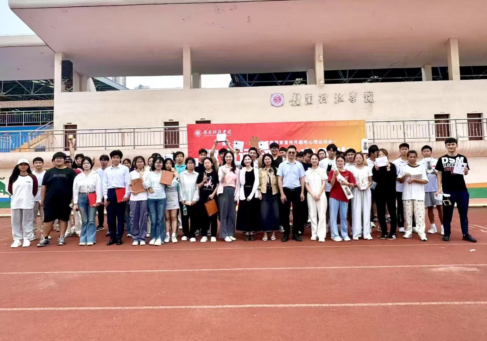 本网讯:5月25日上午,由学生工作处主办,十大买球官方网站承办的学校第十二届5·25心理健康教育宣传月趣味心理运动会在田径场举行。十大买球学生工作处心理中心教师、各二级学院师生共100余人参与。