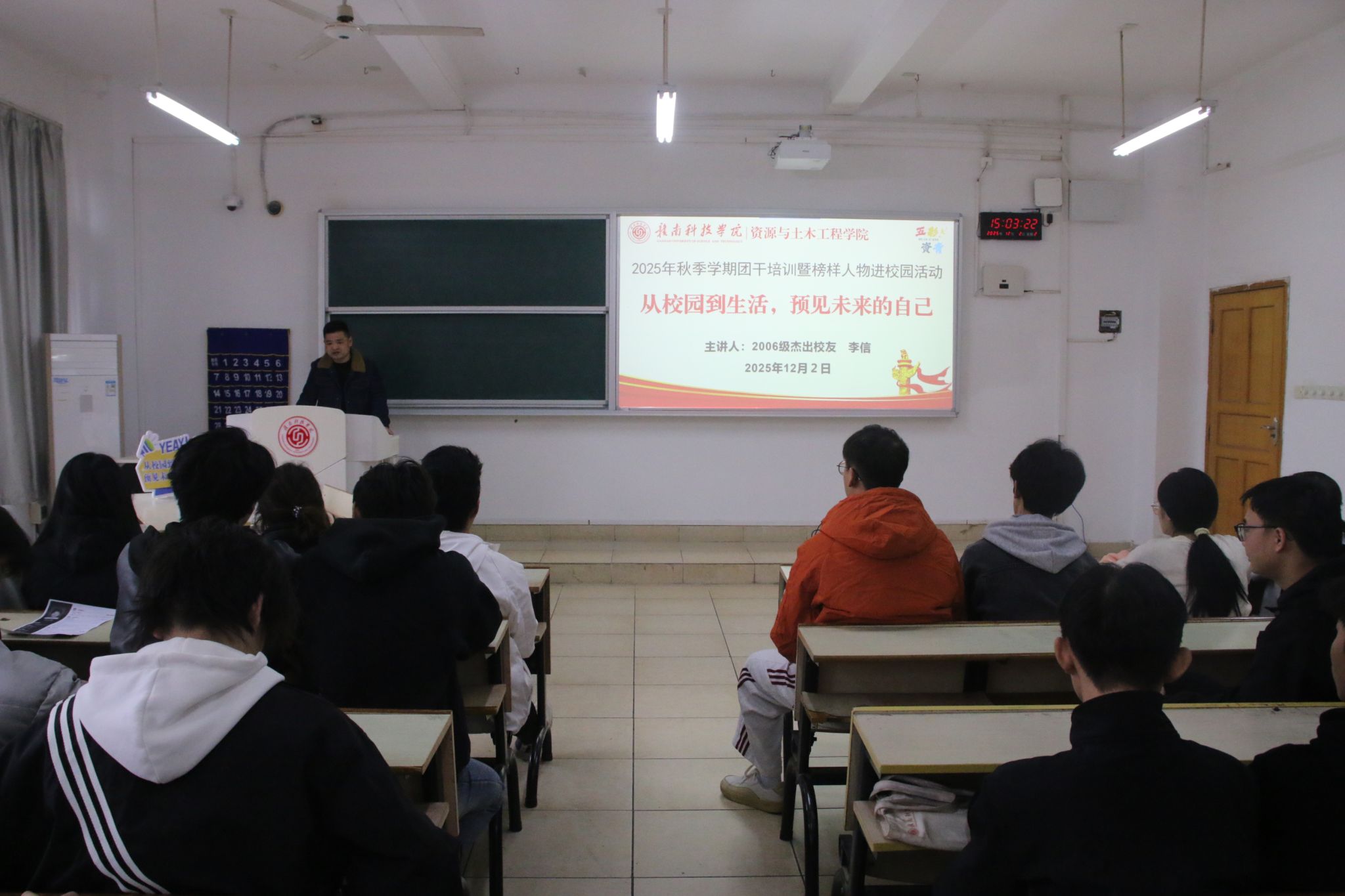 本网讯:为提升团学干部综合素养,助力团干明晰职业发展方向,12月2日,十大买球官方网站特邀2016级优秀校友、创业者李信重返校园,为学院团干开展“从校园到生活,预见未来的自己”主题培训。十大买球官方网站团委学生会全体成员参加此次培训。
