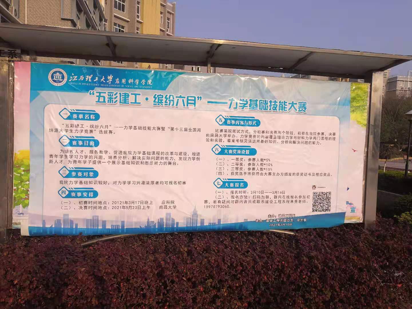 比赛采取笔试方式,分初赛和决赛两个阶段,初赛在我院参赛,决赛由南昌大学举办。力学竞赛的内容覆盖理论力学与材料力学两门课程的理论和实验,着重考核灵活运用基础知识、分析和解决问题的能力。