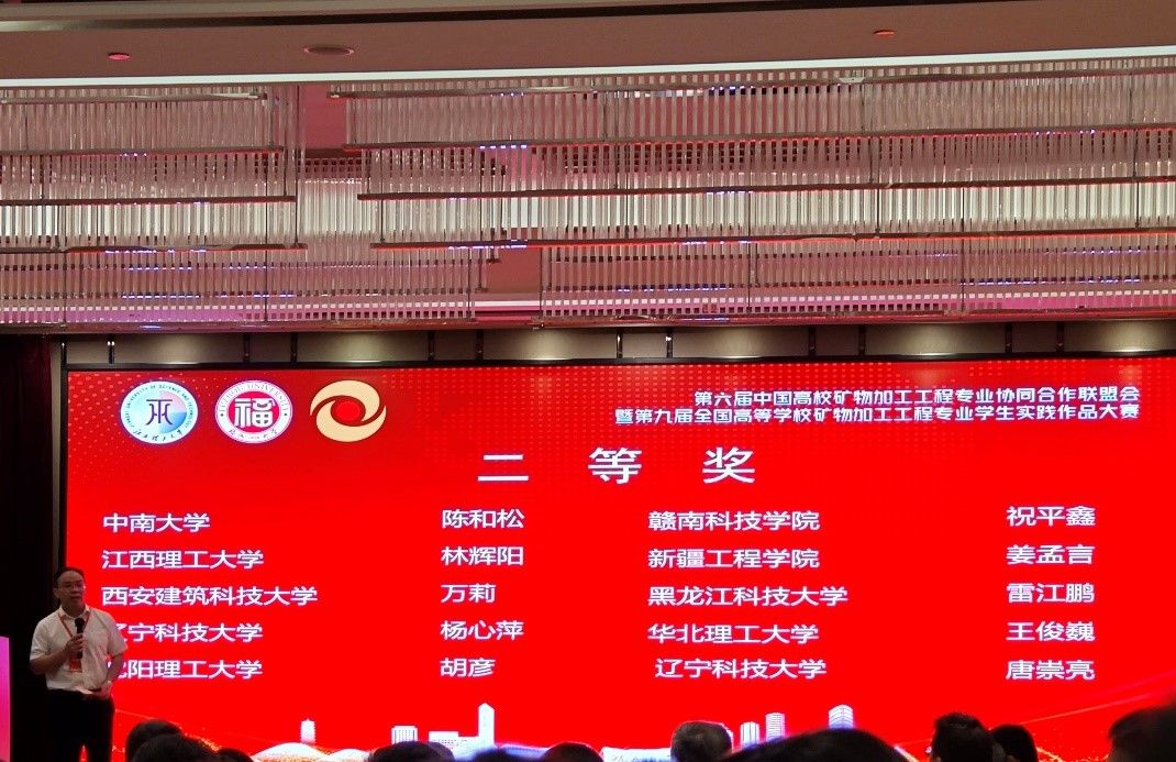 本网讯:近日,第六届中国高校矿物加工工程专业协同合作联盟会暨第九届全国高等学校矿物加工工程专业学生实践作品大赛在福州大学圆满落幕。本次大赛吸引了来自全国40多所高校的40余名院长、200余名师生代表及部分企业代表参会,大赛评委由知名教授和业内权威专家担任,竞赛作品均为矿物加工工程专业学生的实践创新成果,涵盖科技论文、发明创造、物理模型和电子作品等多个门类。