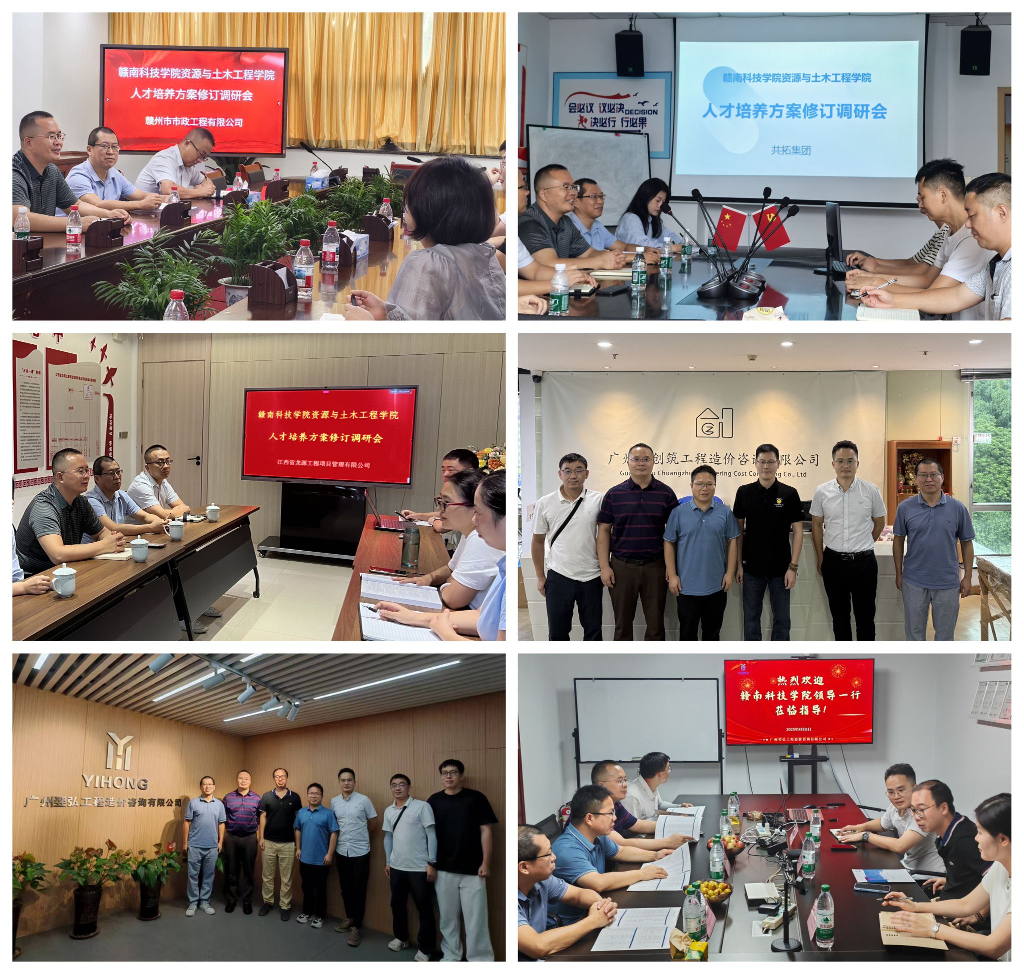 8月7日至14日,十大买球官方网站党委委员代靖怡率土木工程和工程造价教研室骨干教师一行,先后走进江西省龙源工程项目管理有限公司、共拓集团、赣州市市政工程有限公司、广州翌弘工程造价咨询有限公司、广州市创筑工程造价咨询有限公司访企拓岗,并围绕2025版工程造价与土木工程专业人才培养方案修订开展专项调研。学院教师与各家企业高管、总工程师及人力资源部门负责人围绕“新工科”背景下行业人才需求变化、岗位能力标准、课程体系建设、校企协同育人模式等议题进行了深入交流。企业代表结合近年来在BIM技术应用、装配式建筑、全过程工程咨询、绿色建造等前沿领域的项目实践,对现行培养方案的课程设置、实践教学比重及学生综合素质提升提出了建议性修订意见,并希望学院进一步强化学生的数字化能力与跨专业协作能力。