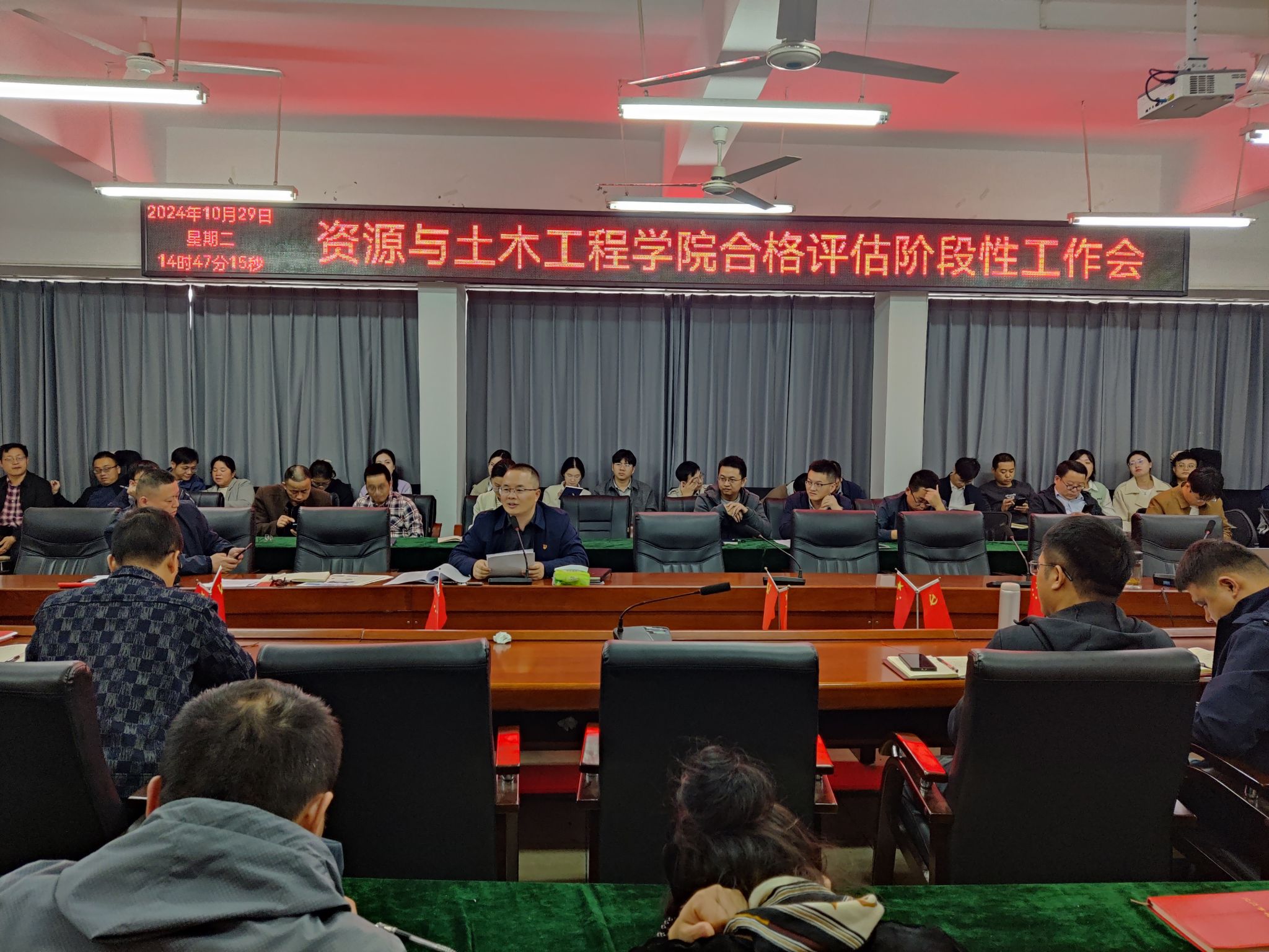 会议伊始,教学工作负责人代靖怡对资土学院前期迎评促建工作进行了阶段性总结。回顾前期工作,学院在教学管理、师资队伍建设、课程体系优化等多方面做出了积极努力。特别是通过不断完善教学管理制度,加强课堂纪律建设,教师在课堂纪律把控方面更加积极主动,学生在课堂纪律遵守方面更加自觉,学院教学氛围和教学质量有所提升。