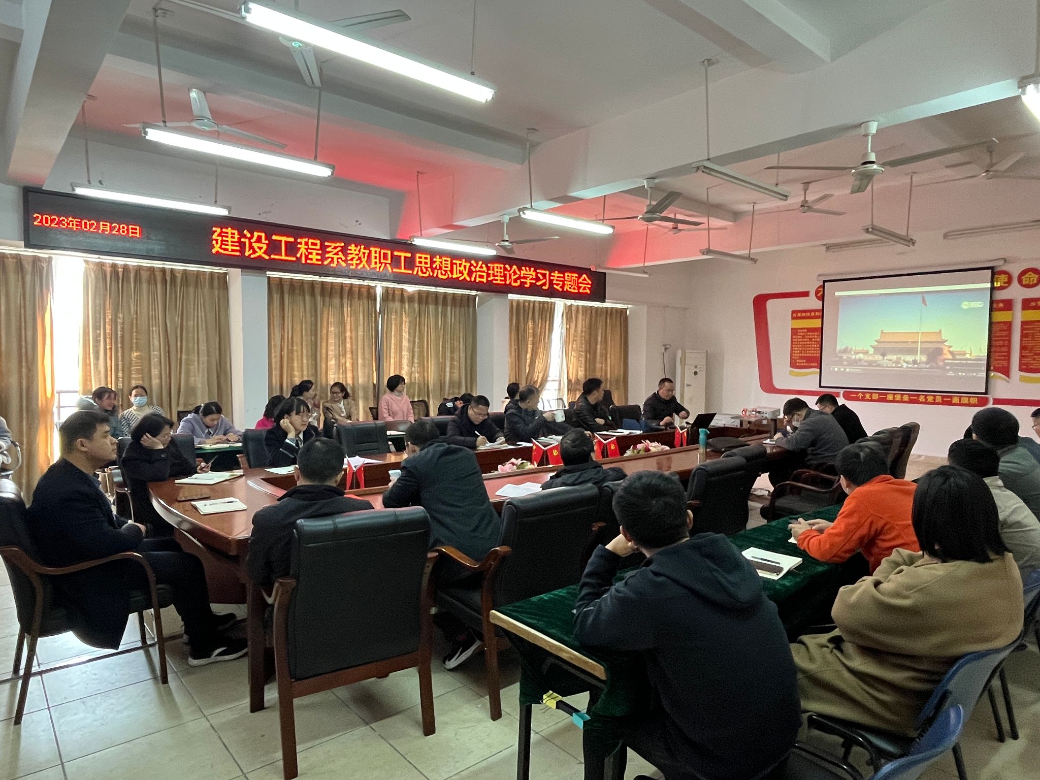 本网讯:为进一步严明政治纪律规矩,认真落实推进全面从严治党工作要求,2月28日下午,建设工程系于主教学楼Z713开展了教职工思想政治理论学习专题会,全体教职工参加本次会议。