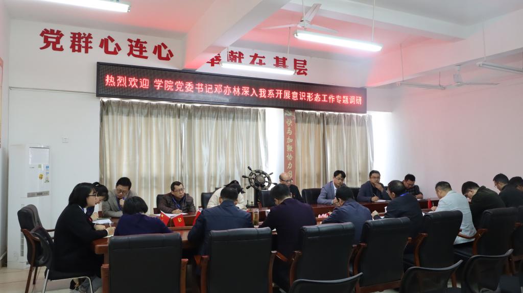 3月26日上午,学院党委书记邓亦林,深入建设工程系开展调研并召开座谈会,党政办主任邵国疆陪同参加。建设工程系领导班子、教研室主任、辅导员和教师代表参加座谈。
