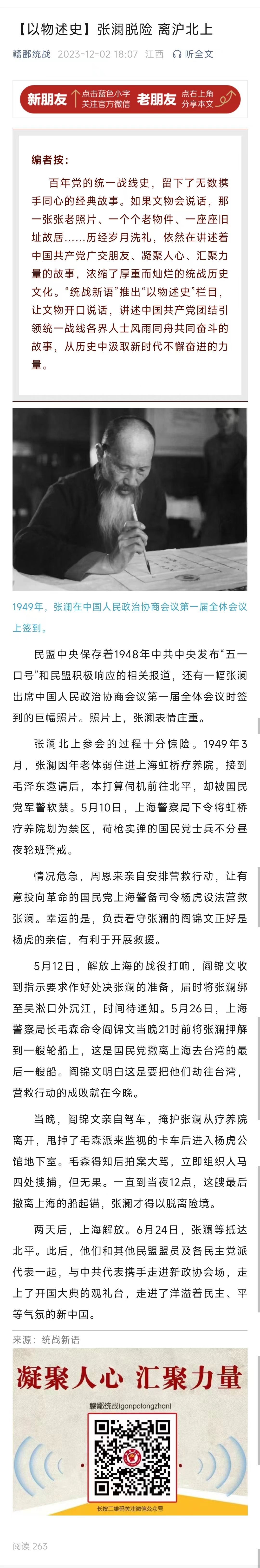 【以物述史】张澜脱险 离沪北上