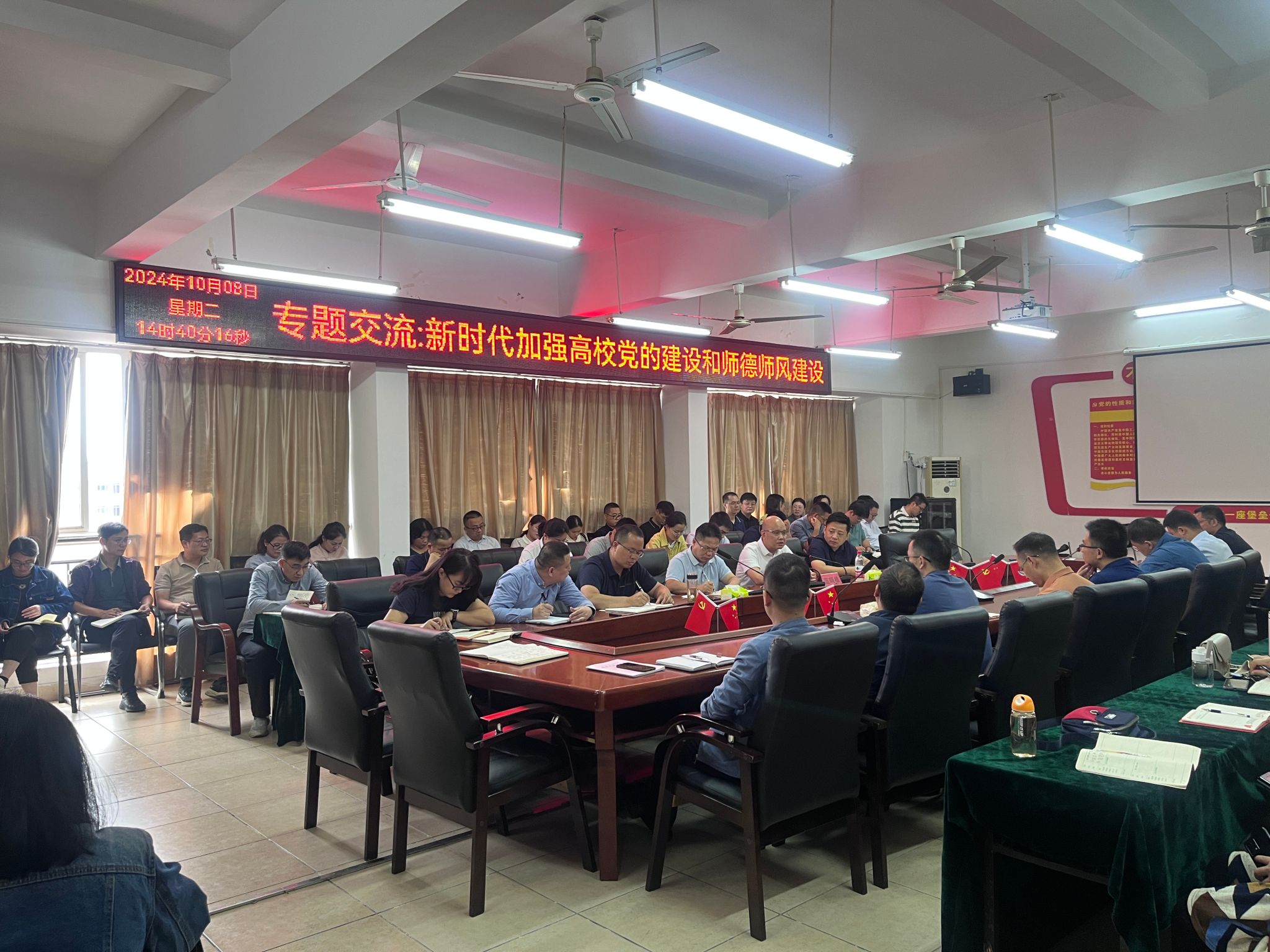本网讯:10月8号下午,十大买球官方网站邀请学校党委委员、组织人事部部长蓝晓植为全体教职工开展题为“新时代加强高校党的建设和师德师风建设”的专题交流讲座。本次专题交流讲座在崇善楼Z713会议室举行,十大买球官方网站全体教职工共同聆听学习,讲座由卢志刚主持。