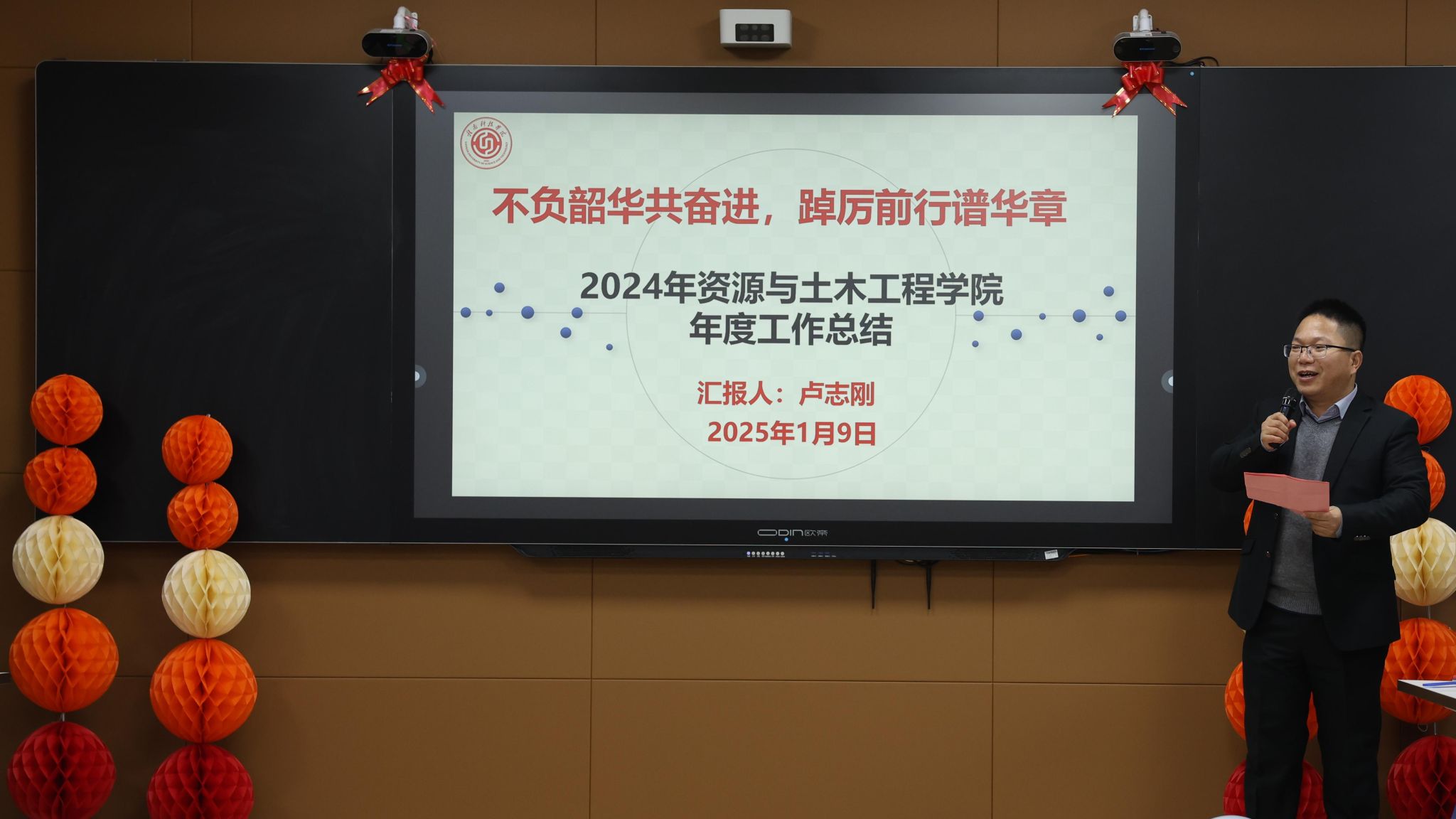 会议伊始,卢志刚副院长从学院党建引领、学科建设、教学科研、学工团学、创新特色等方面全方位对学院2024年度工作进行总结,肯定学院在过去一年里取得的成绩与蓬勃发展,检视存在差距的方面,并且提出2025年的工作要求。