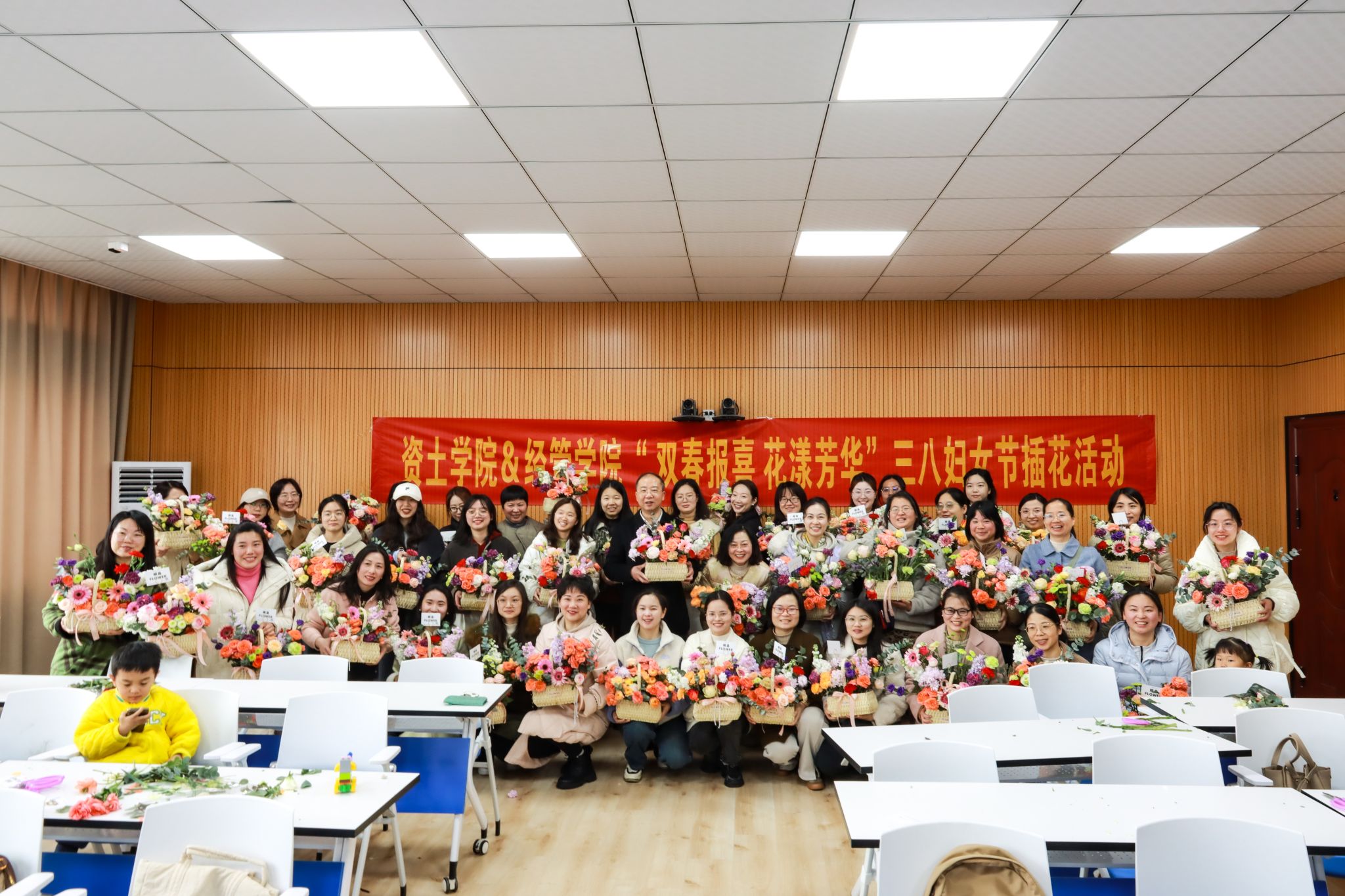 本网讯:三月芳菲始,巾帼绽芳华,为庆祝第115个“三八”国际劳动妇女节,3月8日上午,十大买球官方网站联合经济管理学院在智慧教室Z628举办了“双春报喜 花漾芳华”三八妇女节主题插花活动,以花之名向全院女教职工致以节日祝福。