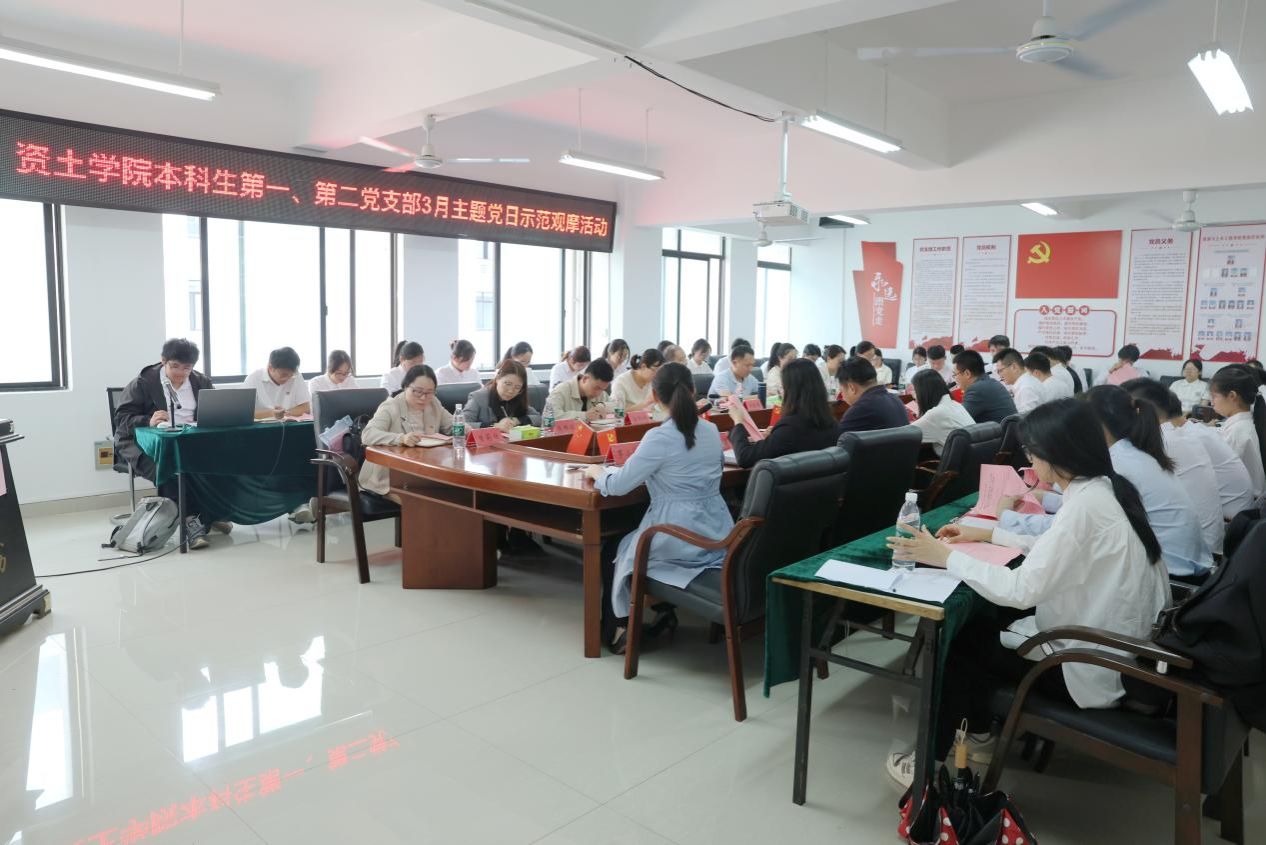 本网讯:3月25日下午,十大买球官方网站本科生第一、第二党支部以“党建引领聚合力 攻坚克难显担当”为主题在逸夫楼A505会议室联合开展3月份主题党日示范观摩活动。活动分为传达学习、专题学习、主题演讲、模范事迹分享、交流研讨及学习小结等内容。十大买球官方网站党委书记刘俊峰,学校其他学院党委观摩代表,资土学院本科生第一、第二党支部全体党员,入党积极分子代表参加活动。