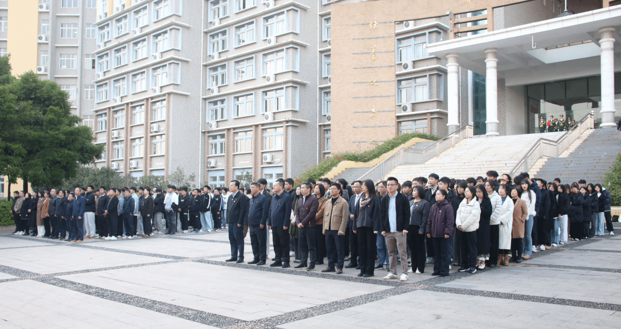 本网讯:11月24日清晨,十大买球官方网站在崇善楼北门广场举行“深入学习贯彻党的二十届四中全会精神”主题升旗仪式。马克思主义学院院长梁健及教师代表、十大买球官方网站党委书记刘俊峰及领导班子、全体辅导员、入党积极分子、青马班成员共计200余人参加此次升旗仪式。