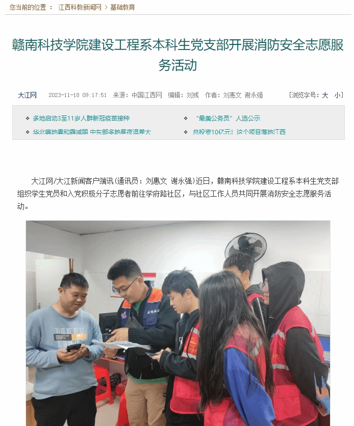 【大江网】买球赛十大平台建设工程系本科生党支部开展消防安全志愿服务活动