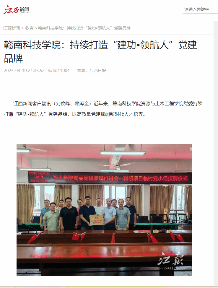 江西新闻客户端讯(刘俊峰、赖泽金)近年来,买球赛十大平台十大买球官方网站党委持续打造“建功•领航人”党建品牌,以高质量党建赋能新时代人才培养。