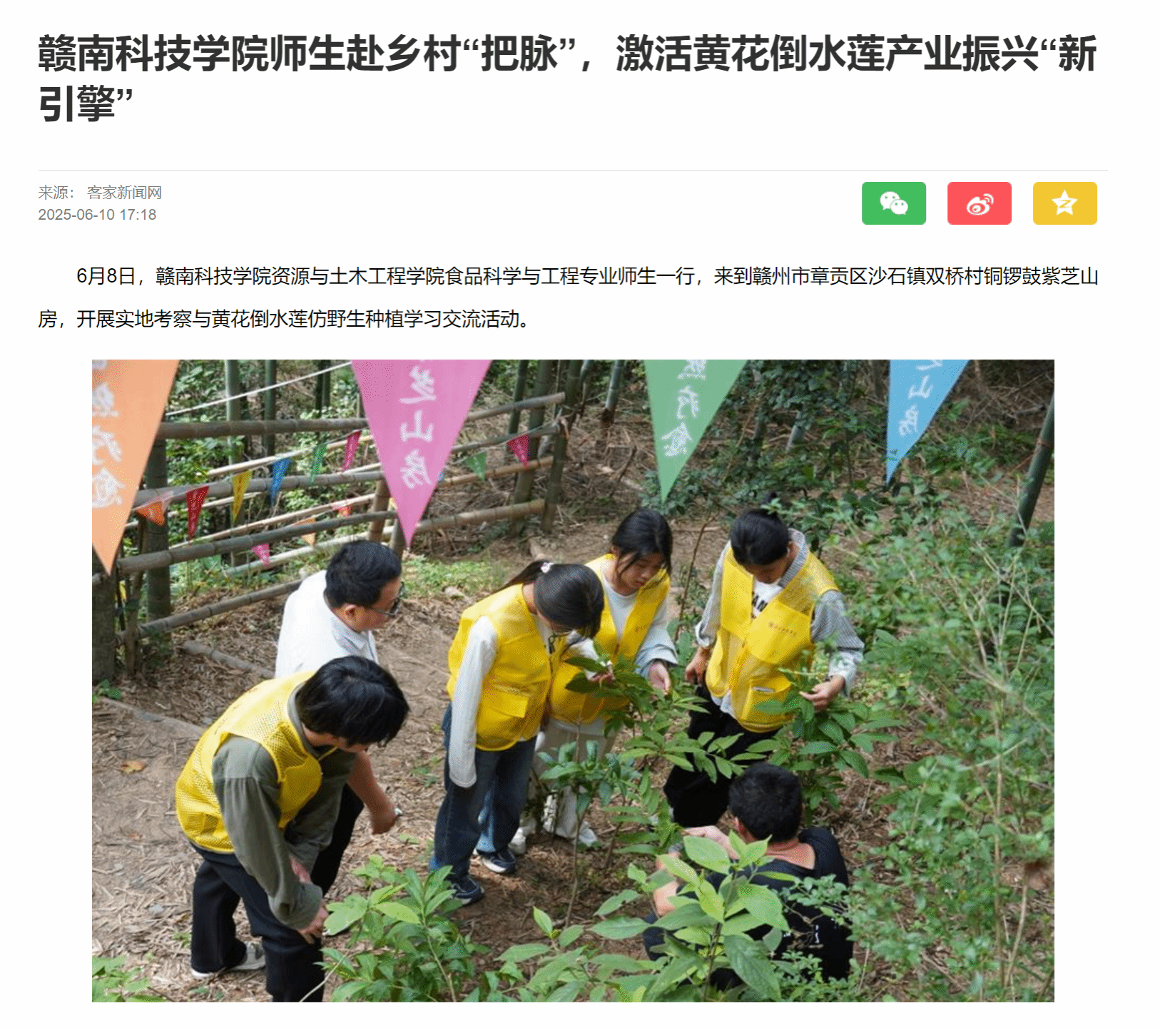 【客家新闻网】买球赛十大平台师生赴乡村“把脉”,激活黄花倒水莲产业振兴“新引擎”