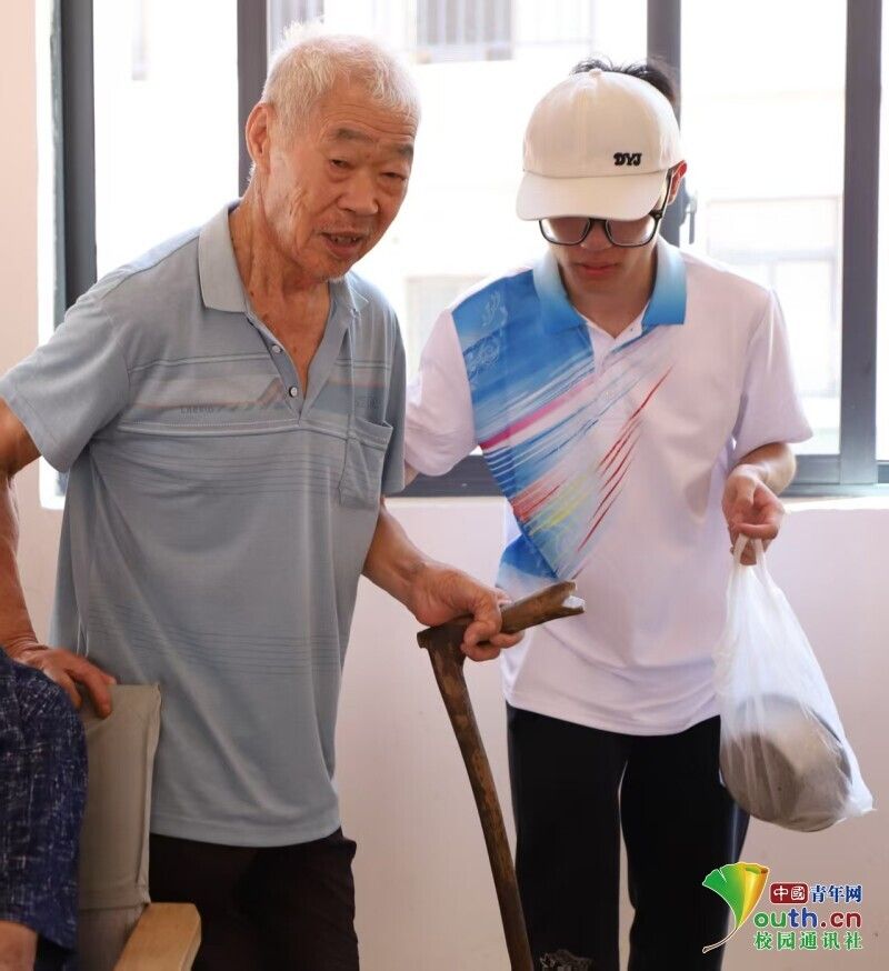 图为客韵菁菁社会实践队队员搀扶腿脚不便的老爷爷行走。凌俐 供图