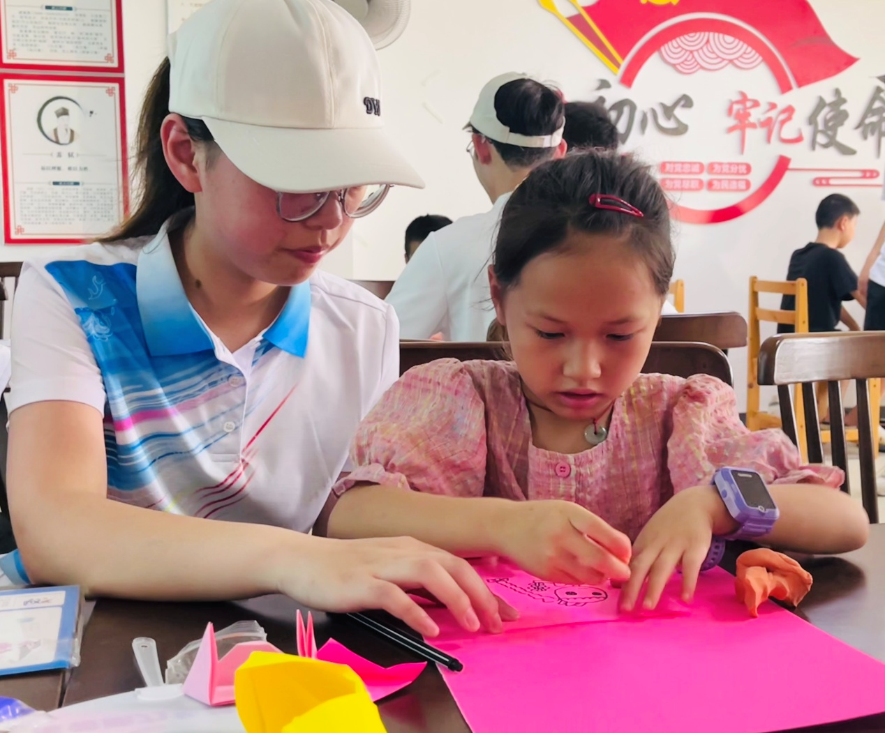 护童成长,安全为先。“客韵菁菁”实践队聚焦儿童安全防护能力提升,在新时代文明实践所为湖江镇儿童组织“童心港湾”活动。趣味套圈区,笑声不断,孩子们排着队跃跃欲试;石膏娃娃涂色角,画笔在小手中挥动,白坯渐渐染上鲜亮色彩;DIY手工台前,折纸在手中渐渐成形、单调白扇穿上干花衣裳。整个港湾里,笑声、讨论声此起彼伏,孩子们的热情像夏日阳光般热烈。