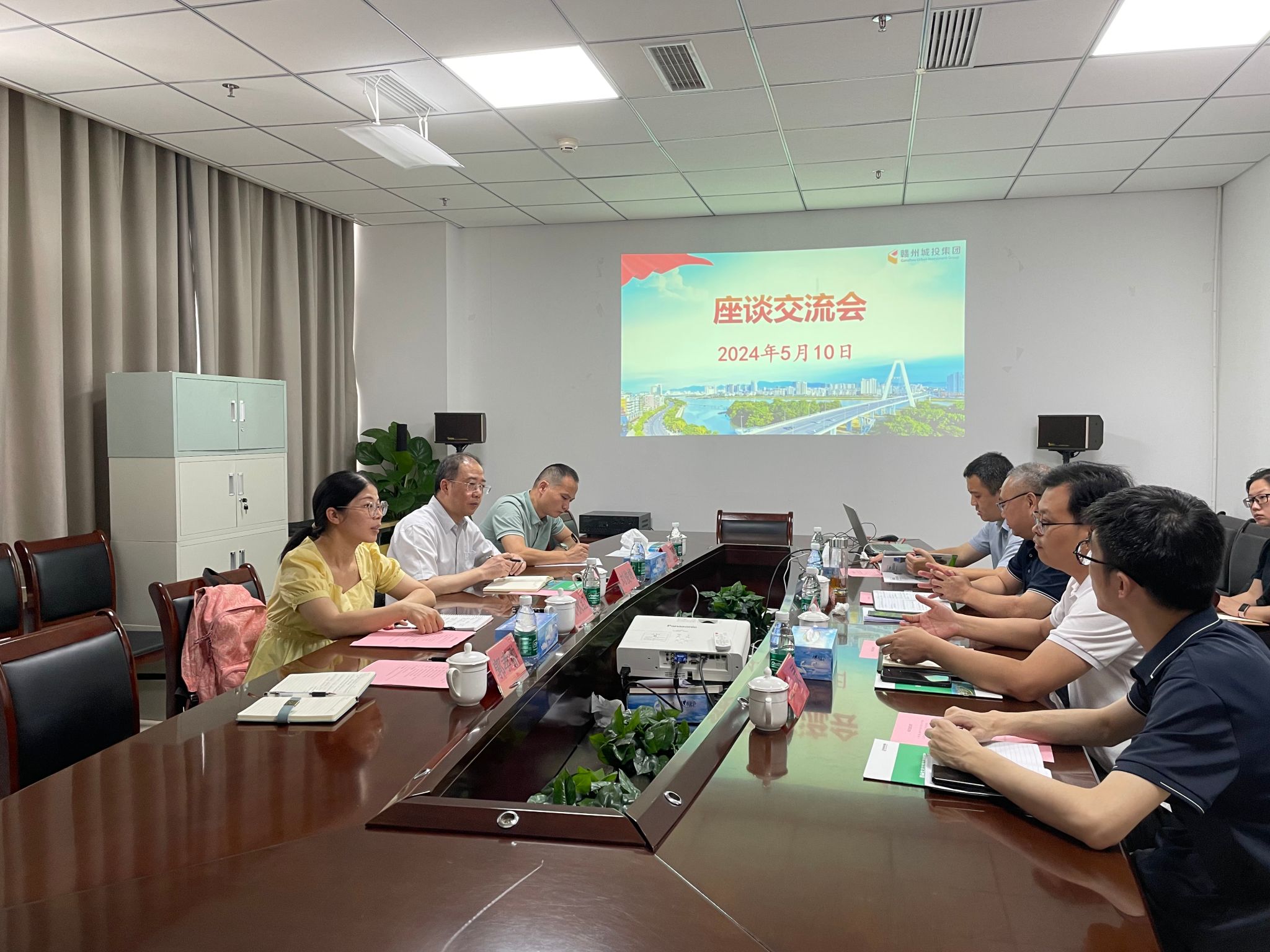 本网讯:5月10日上午,资土学院党委书记刘俊峰一行赴赣州城投集团访企拓岗及校企合作洽谈。本次访企拓岗主要以座谈会形式进行,赣州城投集团党委委员、副总经理郭庆华,集团党群部部长龙琪,生态投资公司执行董事黎声亮、副总经理黄威、技术部副经理王灵出席座谈会,十大买球资土学院周秋红、肖斌、郭孝翀三位博士陪同参会。
