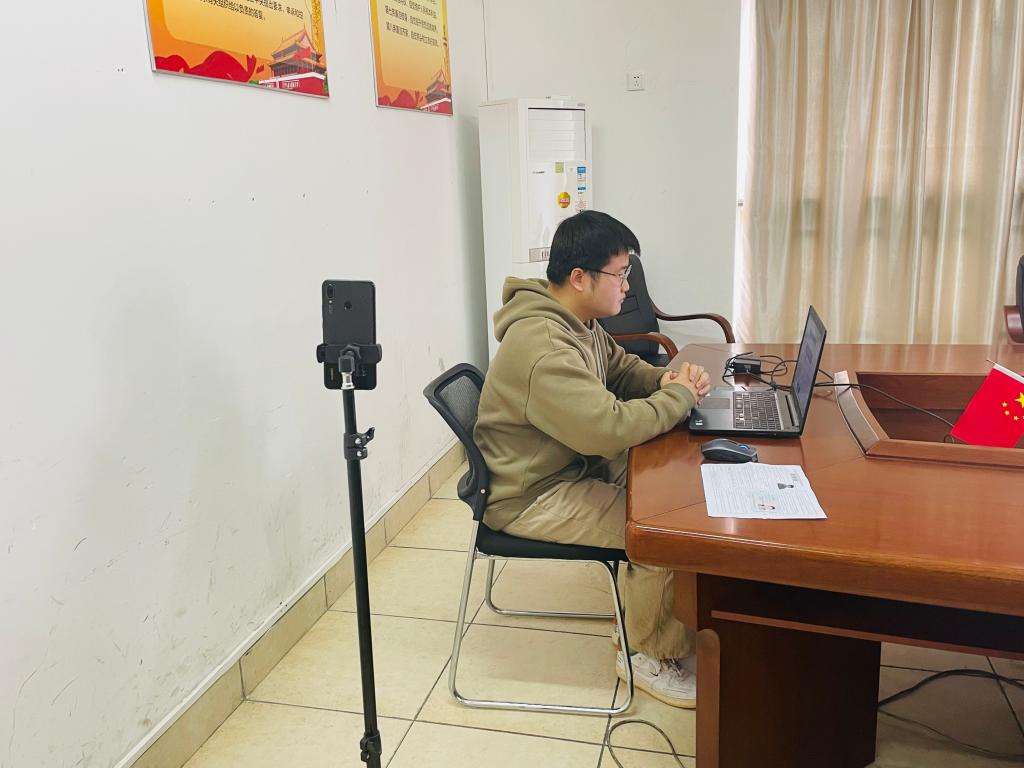 土木181班华云军同学表示,简洁明亮的独立场所、高速畅快的网络、固定高清的双机位摄像头……在我们为“云复试”担忧时,学校相关部门、系里为我们准备好了多间“线上复试”专用教室,解决了场地和技术难题,让我们专心复习、全力备考,我们感到非常感激和欣慰。