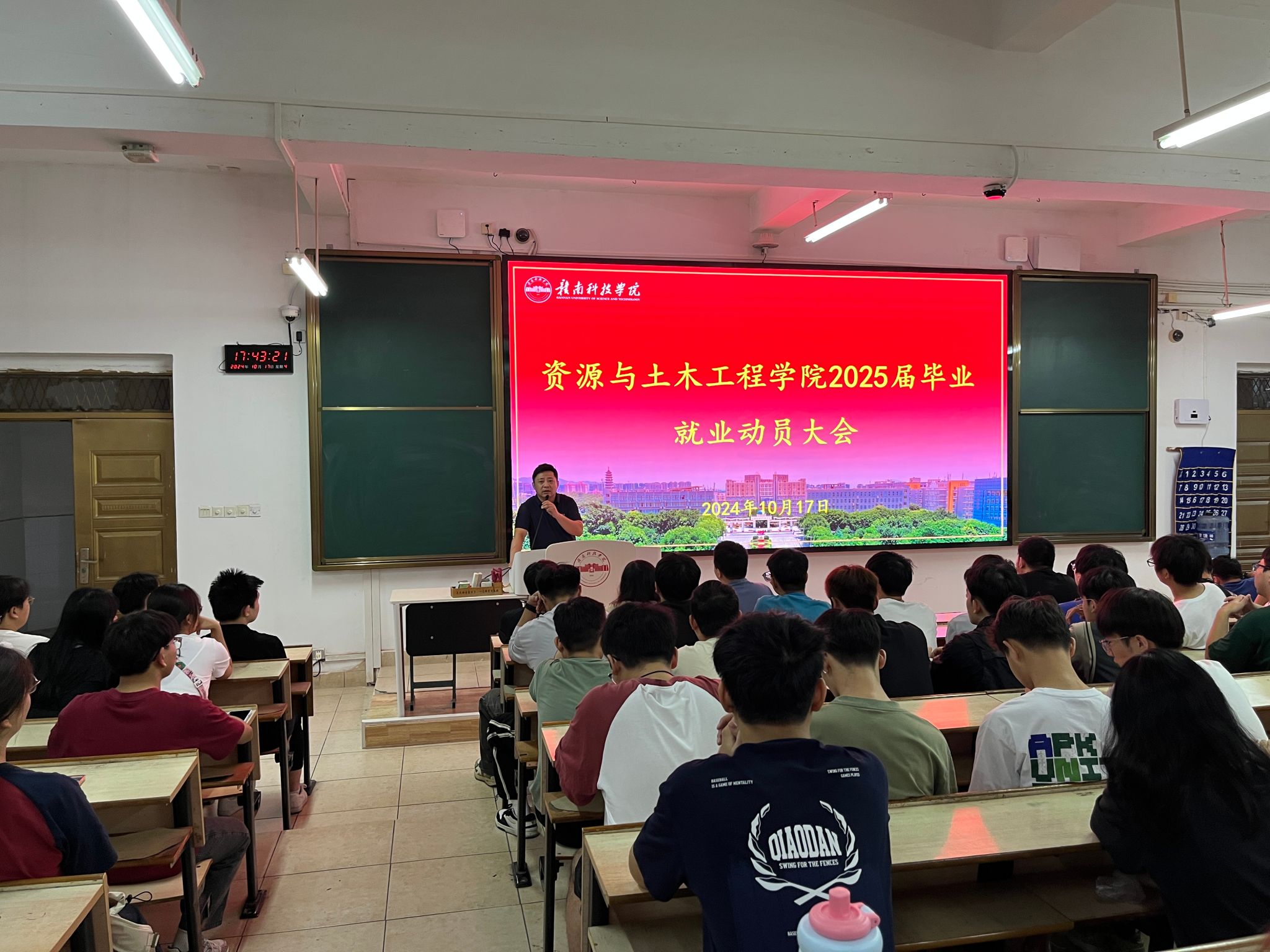 本网讯:10月17日下午,为统筹推进毕业生就业工作,帮助毕业生明确就业方向与前景,十大买球官方网站在崇善楼Z1D3召开2025届毕业生就业动员大会。十大买球官方网站学工负责人涂黎明,毕业班辅导员刘辉、张超美,就业辅导员刘波以及2025届全体毕业生参加了此次会议。