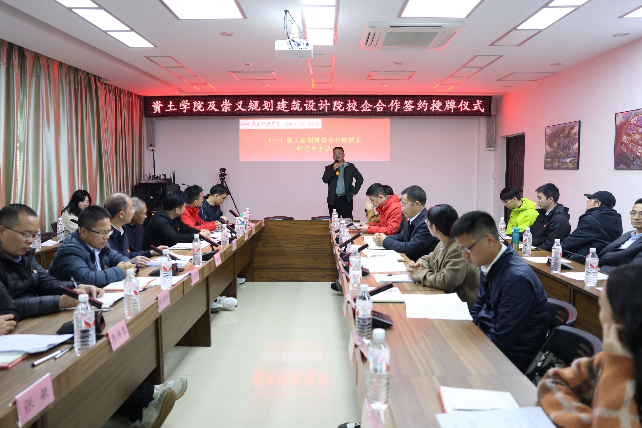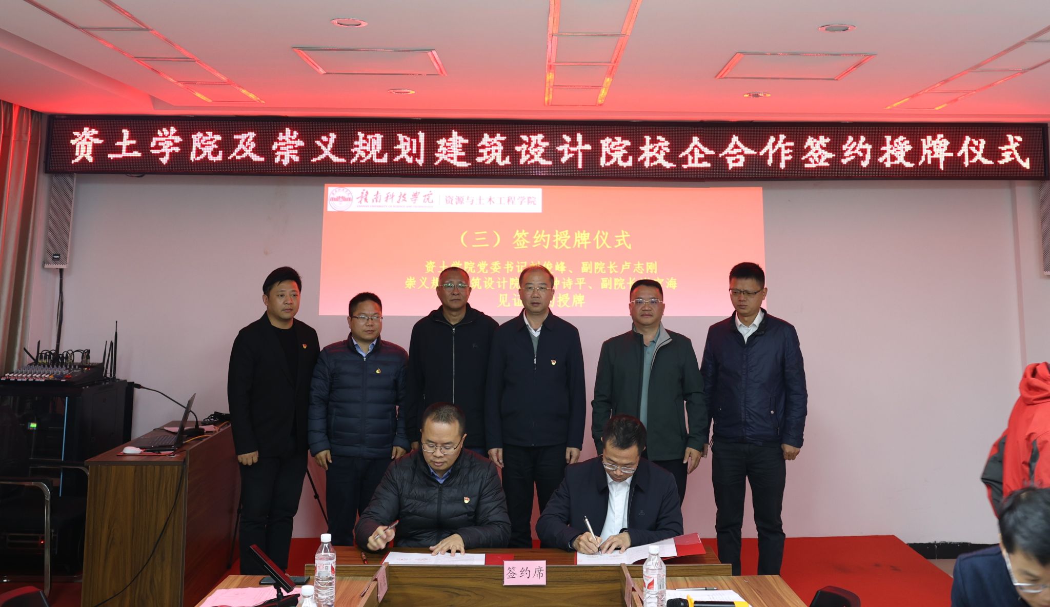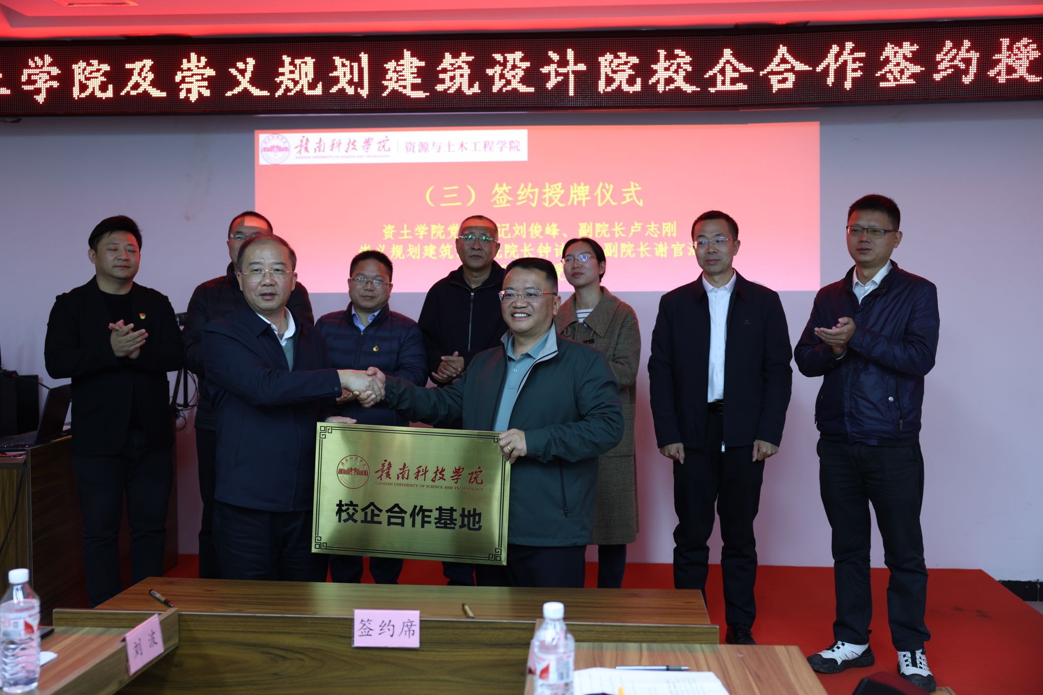 在全场嘉宾的共同见证下,双方代表进行了签约仪式。随后,买球赛十大平台十大买球官方网站党委书记刘俊峰与崇义规划建筑设计钟诗平院长举行了授牌仪式,标志着双方的校企合作正式拉开帷幕。