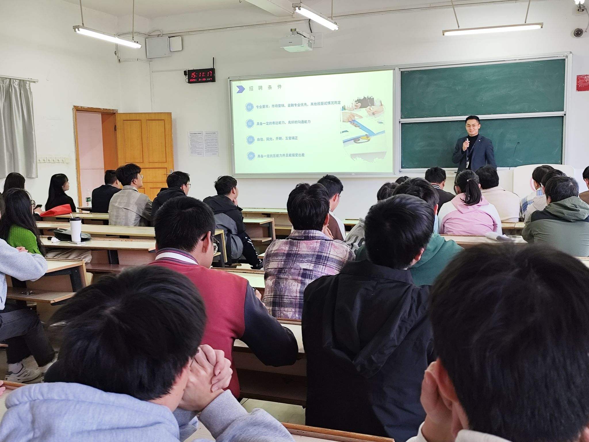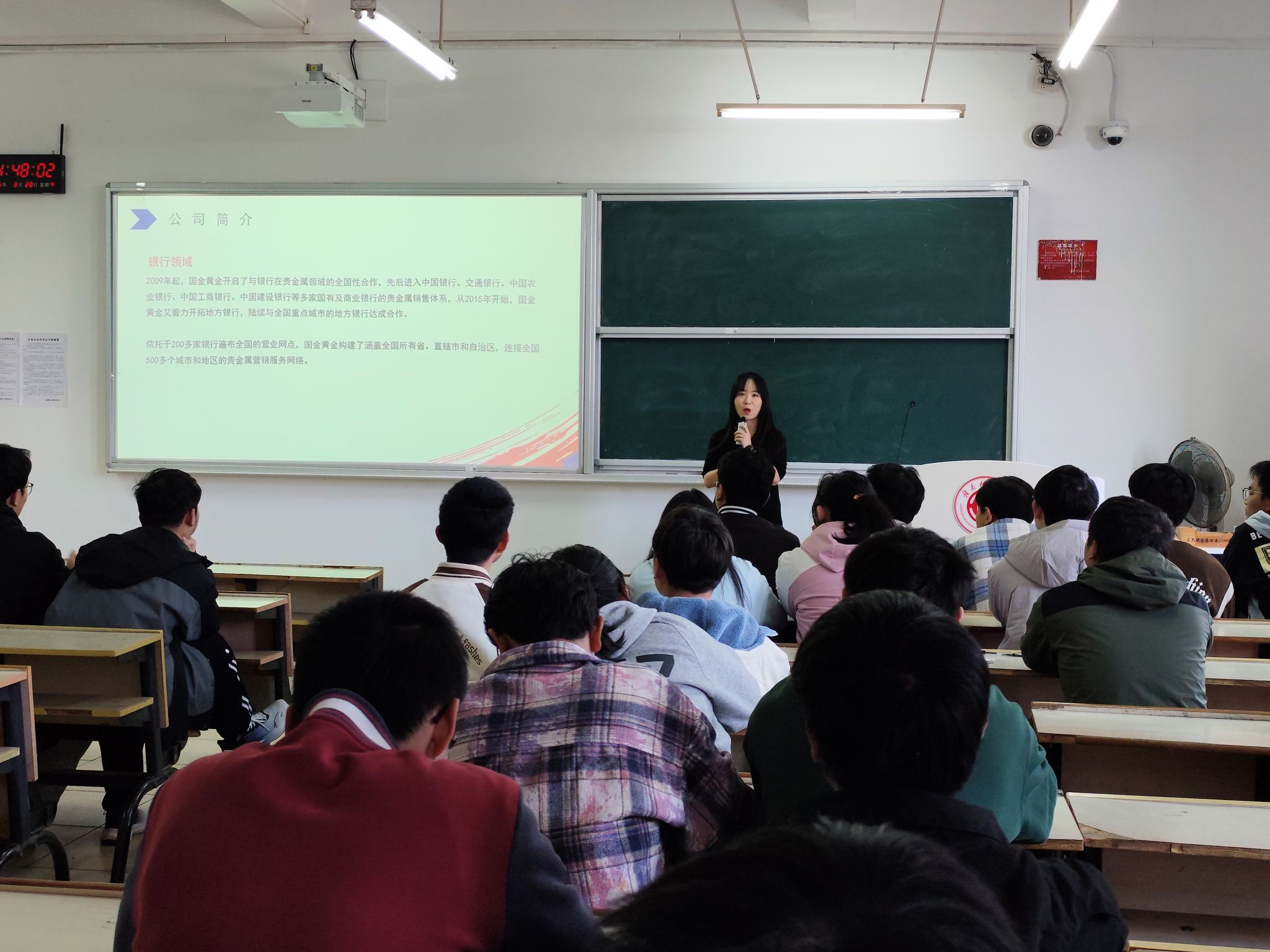 互动环节中,毕业生们踊跃提问,围绕公司文化、工作环境、职业发展规划等个人关切问题与李佳总经理展开深入交流。李佳总经理认真倾听每一个问题,并结合公司实际情况,给出了细致且具有针对性的解答,现场气氛热烈而融洽。他真诚地向毕业生们发出邀请,期待大家能够加入国金黄金,携手共创美好未来。